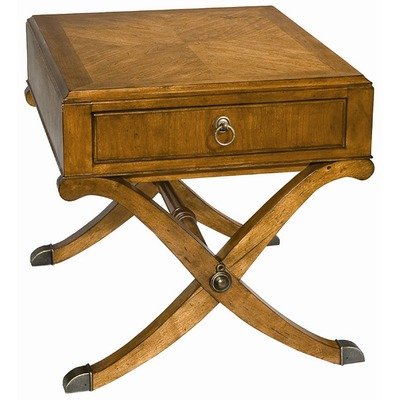 Peters-Revington Features: -End table. -Astor collection. -Distressed antique cherry finish. -Birch solids and cherry veneer construction. -Provides drawer storage. -Classic 'X' base design. -Assembly required. -Manufacturer provides one year warranty. 2829-22
